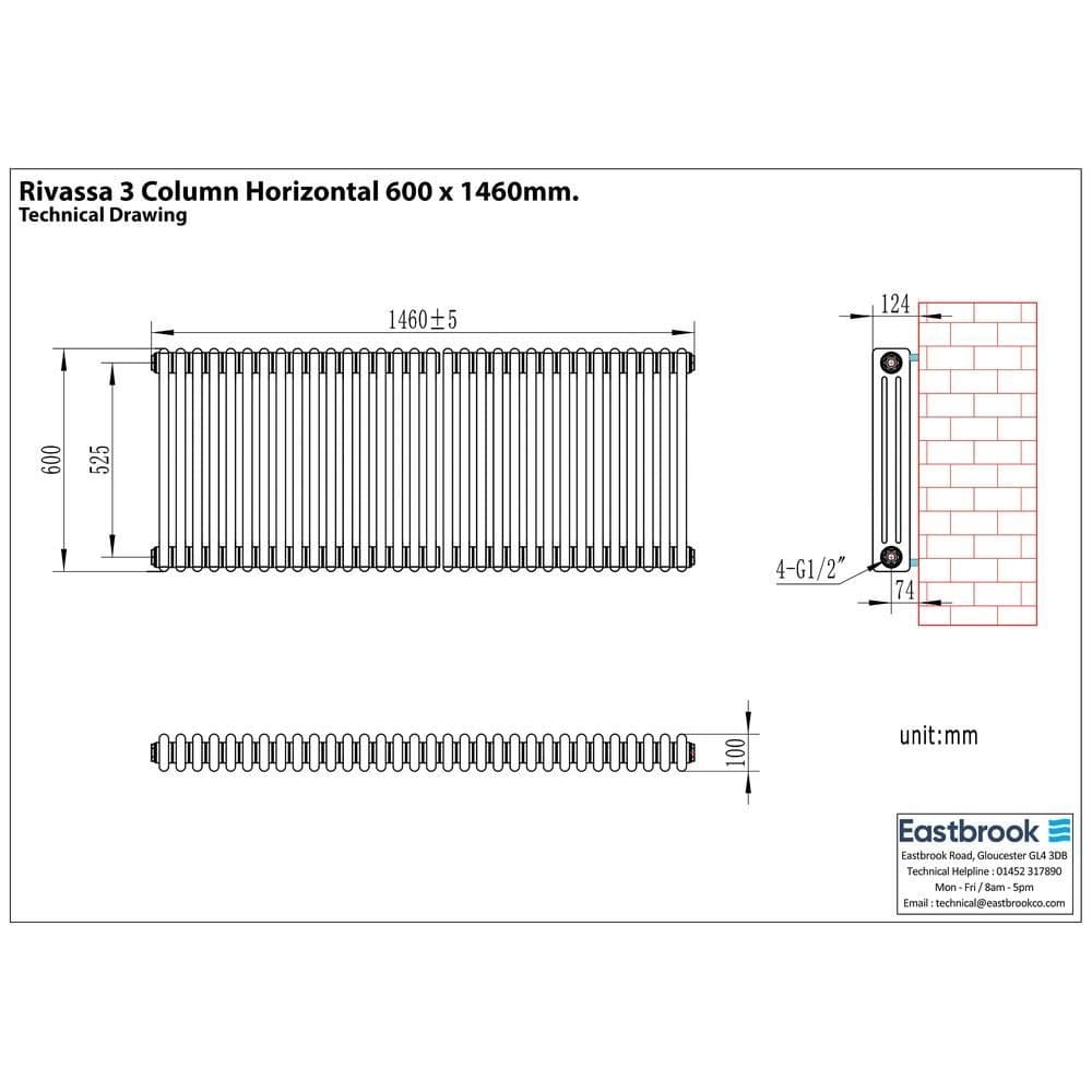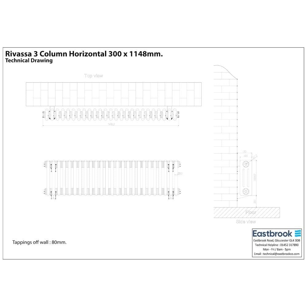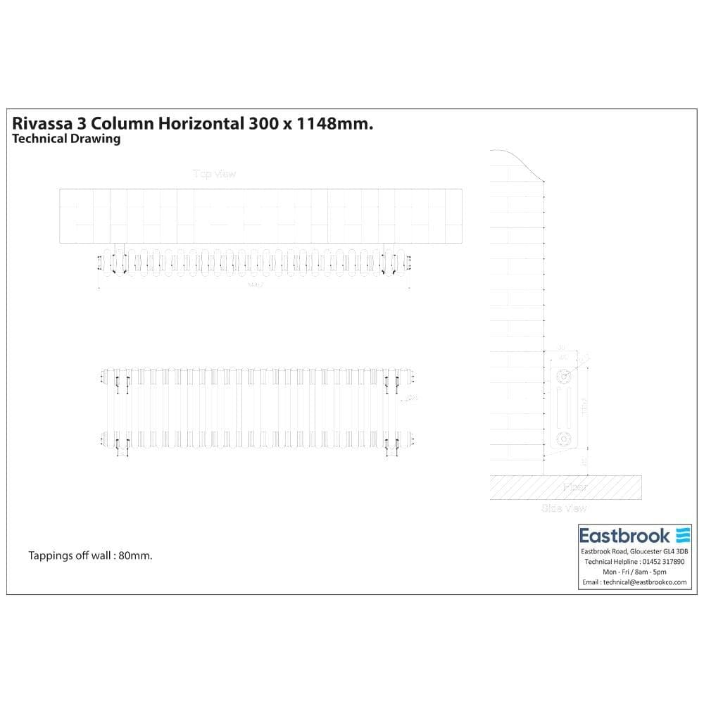 Eastbrook Rivassa Traditional 3 Column Radiator in Matt Black