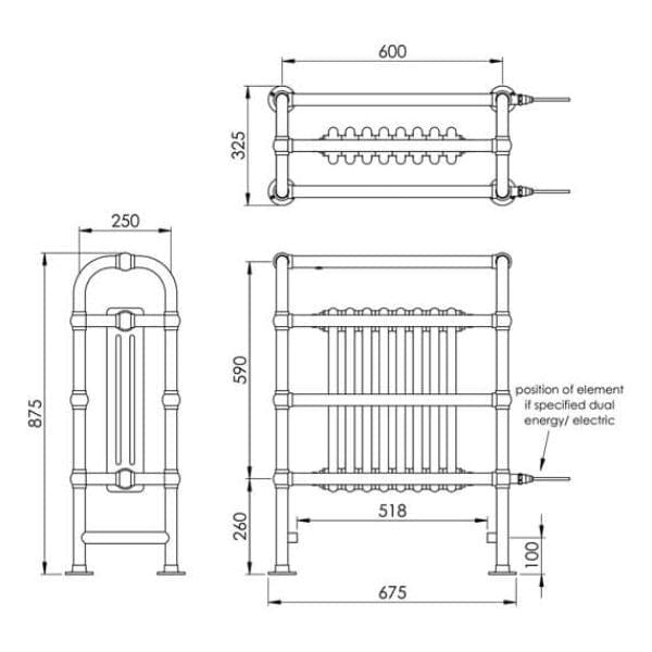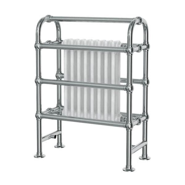 A classic yet timeless fixture, this towel warmer features a traditional column radiator within a handcrafted, chrome-plated brass frame. It offers excellent heat output and plentiful space for hanging towels, making this elegant model a statement piece for any room.